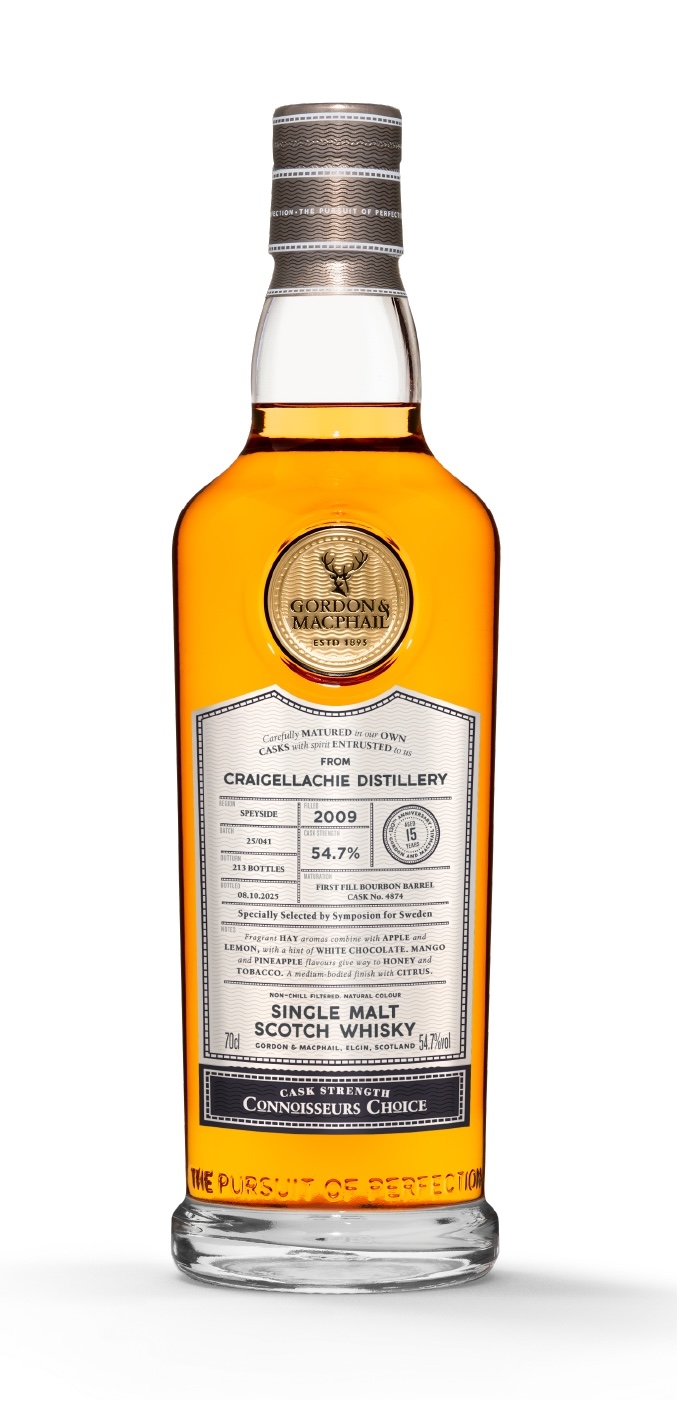 Det kommer en bourbonlagrad Craigellachie till bolaget den 23 januari. Det är en femtonårig single cask i serien Connisseur’s Choice från Gordon & MacPhail. Precis allt i de där två meningarna är underbara nyheter. Priset gör som ofta numera lite ont: 1800 spänn minus fem. Jaja, det är väl så det är numera…men inte fan är whisky billigt precis.