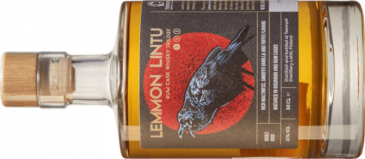Intressant! Jag har bara provat en Teerenpeli tidigare, NAS-en PRKL som jag gillade. Denna Teerenpeli har lagrats på bourbon- och romfat, och alkoholhalten pevliga 43%. Den är för travel retail och upplagan är 1000 flaskor – säger whiskybase. Samtidigt släpptes hela 800 flaskor på Systembolaget i juni, för 649 kronor, så whiskybase kan omöjligen ha helt rätt i sin information. Tydligen tog Sverige nästan hela upplagan. Notera att det är Lemmon, dubbel-m: detta har ingenting med citroner att göra, men desto mer med Kalevala och någon himla korp i det eposet. Storyn kring whiskyn hittar du här.