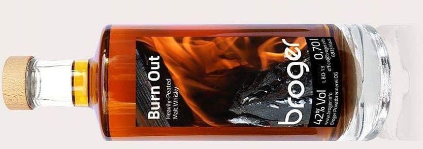 Broger heter ett litet familjeägt destilleri i Österrike. Frida Birkehede har skrivit en ingående presentation av Broger – läs vidare här. Idag provar vi Brogers standardrökare Burn Out, som är buteljerad på 42% och producerad på hårdrökt malt (57 ppm). Jag har smakat den en gång tidigare, utan att egentligen prova den och skriva noter. Jag vet därför att vad som väntar min näsa och gom är fascinerande, men inte direkt njutbart.