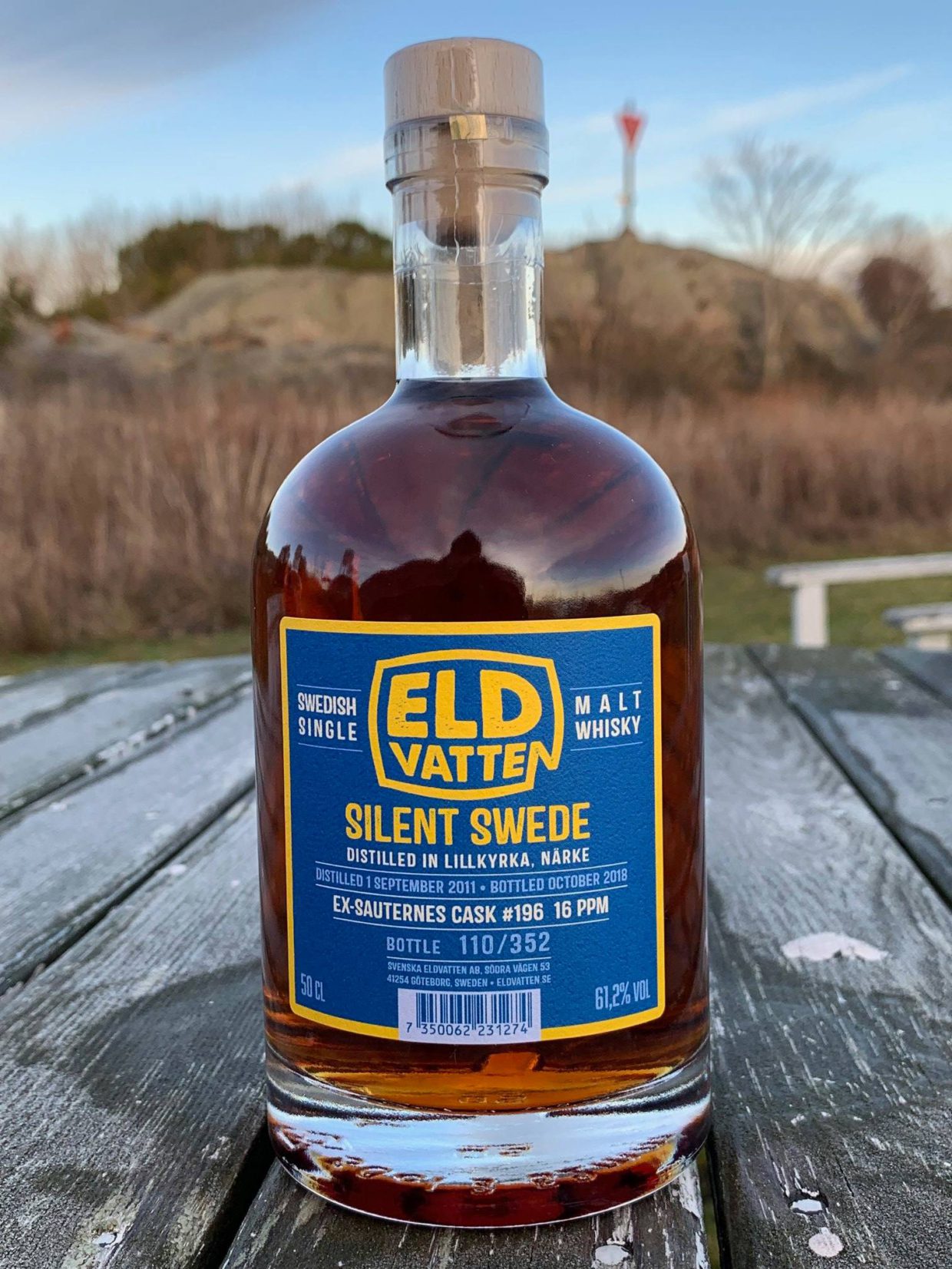 Så har jag då kommit ikapp med mina Silent Swede på bloggen: alla fyra som har släppts är med denna bloggpost avklarade. Denna whisky, Sauternes, släpptes den 9 januari på Systembolaget, till ett pris av 998 kronor. Det handlar som alltid i denna serie om whisky som destillerades på det insomnade destilleriet Grythyttan, även om det av olika anledningar bara står ”Distilled in Lillkyrka” på etiketten. Fatet var ett first-fillfat som hade innehållit Sauternesvin. Alkoholhalten är hög – tydligen har dessa fat legat i ett torrt och varmt lagerhus – hela 61,2%, och fatet, sannolikt en barrique på 225 liter, gav 352 flaskor. Whiskyn är sju år gammal och receptet var Grythyttans mellanrökiga, med 16 ppm på malten. Mer detaljer hittar du här.